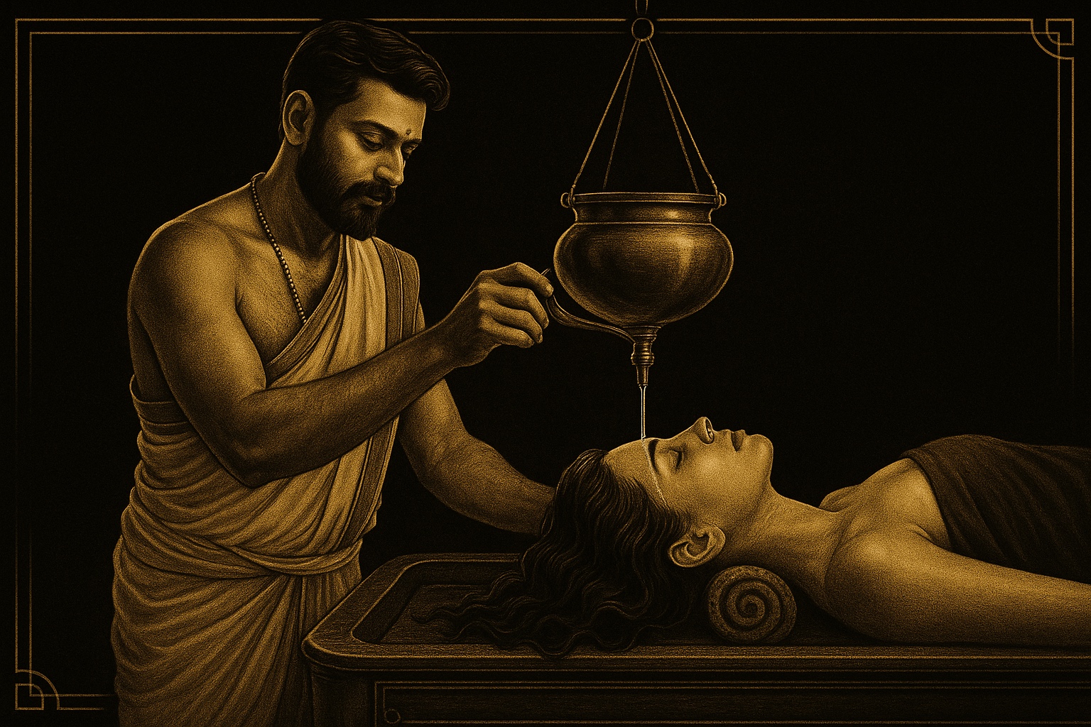 Holistic healing approach using ancient Ayurvedic techniques to balance mind, body, and spirit for overall wellness.